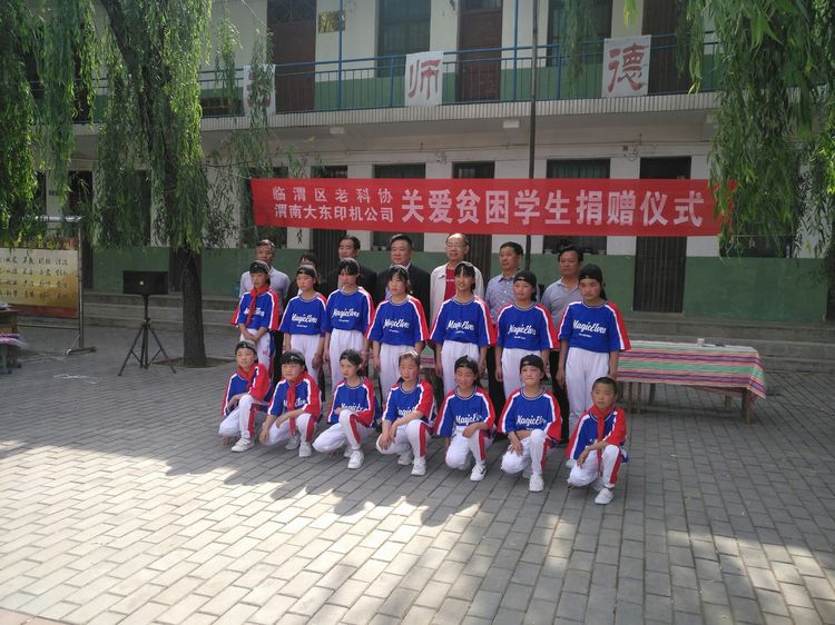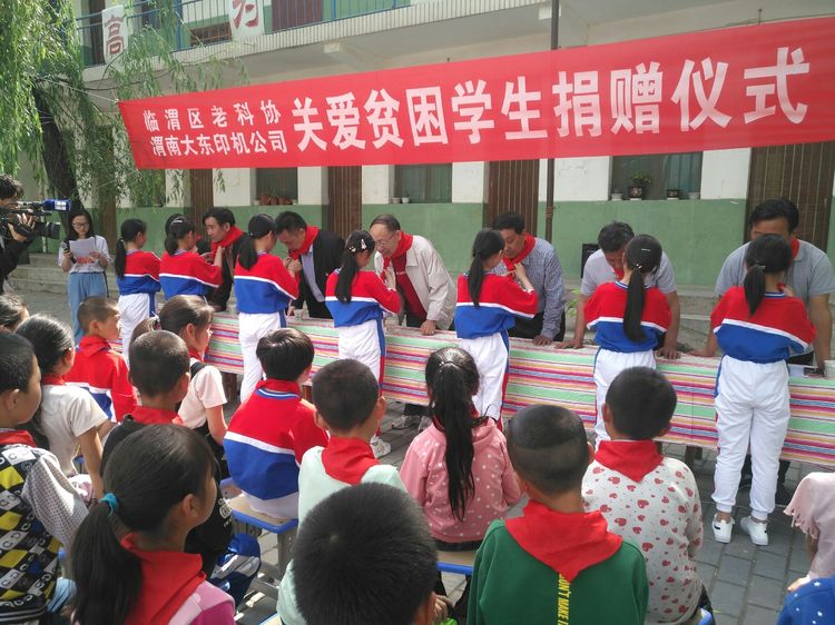 參加此(cǐ)次活(huó)動的有:渭南草莓视频ios印刷包裝機械有限公司董事長趙建東及相關工作人員、老科協王(wáng)會長(zhǎng)、社會愛心(xīn)人士以及三官廟小學(xué)全體師生。