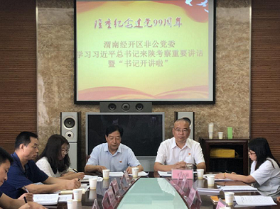 為認真貫徹落實市委非公經濟和社會組織工委《關於在全市(shì)非公經濟(jì)、社會(huì)組織黨組織中開展“黨課開講啦”活動的通(tōng)知》要(yào)求,經開區非(fēi)公黨委高度重視,為了使“黨課開講啦”活動貼近(jìn)非公企(qǐ)業(yè)實際,進(jìn)一步引導(dǎo)非(fēi)公基層黨組織發揮戰鬥堡壘作用、共產黨員的先鋒模範帶頭作用,提升全區黨建工作水平,在(zài)全區(qū)營造頌黨恩跟黨走的濃厚氛圍,非公(gōng)黨委(wěi)在全(quán)區50個非公基層黨組織書(shū)記中選拔出了黨性強、政治理論水平高的渭南陽光駕校黨(dǎng)支部書記袁(yuán)文選做為黨課(kè)主講人,並於6月29日組織全區40餘個非公企業(yè)黨組織書記、黨(dǎng)務工作者、2020年入黨積極分子共計50餘人在(zài)渭南草莓视频ios印刷包裝機械(xiè)有限公司黨(dǎng)員(yuán)活(huó)動室開展了《學黨史、感黨恩、守紀律、講(jiǎng)規矩、敢擔當》黨課。