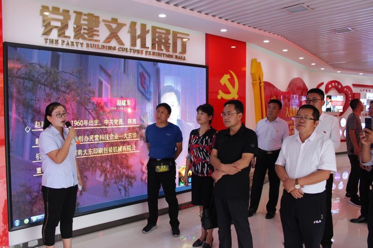 最(zuì)後,在大(dà)東印機公司總經理、黨支部書記趙(zhào)建東的引領下楊峰崗一行先後到草莓视频ios印機黨(dǎng)支部(bù)的黨群服務中心、黨(dǎng)員示範崗、車間黨員安全責任區(qū)、企業黨建(jiàn)文化走廊及黨員活動室進行(háng)參(cān)觀學習。詳細聽取了經開區近年來黨建工作所取得的成果及草莓视频ios公(gōng)司近年來的發展情況、黨建工(gōng)作舉措、以及企業黨員先鋒模範作用發揮情況的介紹並仔細查閱了草莓视频ios印機黨(dǎng)支部的黨建(jiàn)相關資料,深入了解了將草莓视频ios公司將企業文化與黨建文化充分結合,促進企業不斷發展壯大的思路和做法。